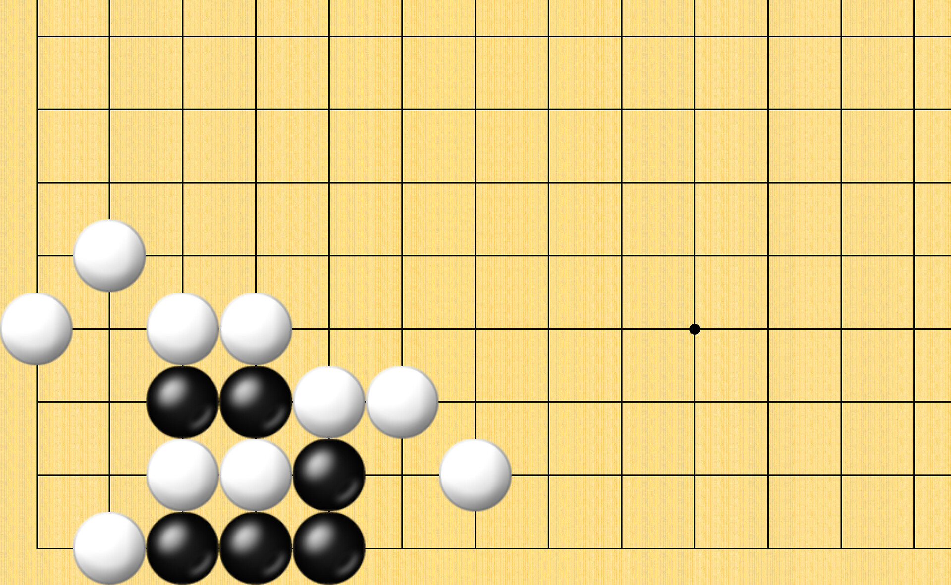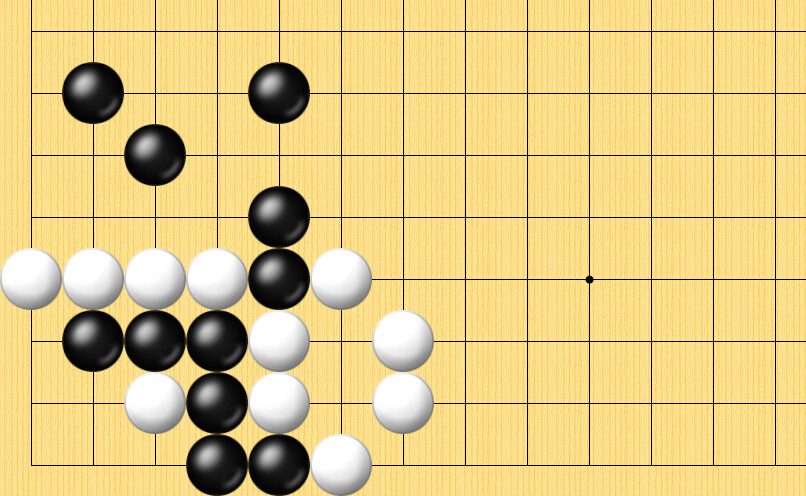 장면도) 흑이 둘 차례입니다. 흑돌이 사는 수순은? 문제가 어렵지는 않지만 9수까지 눈으로 정확하게 수읽기 하는 게 중요합니다.
