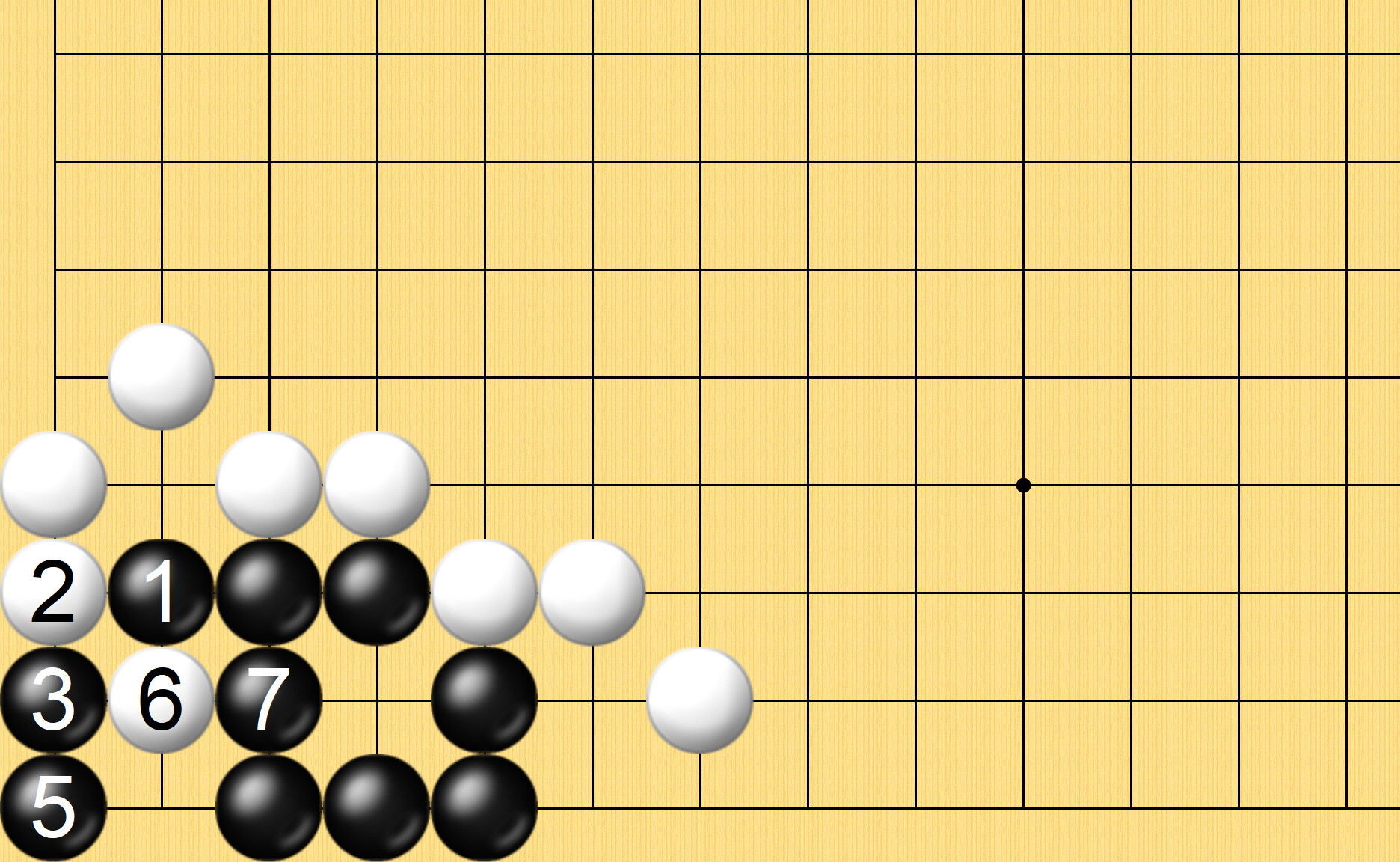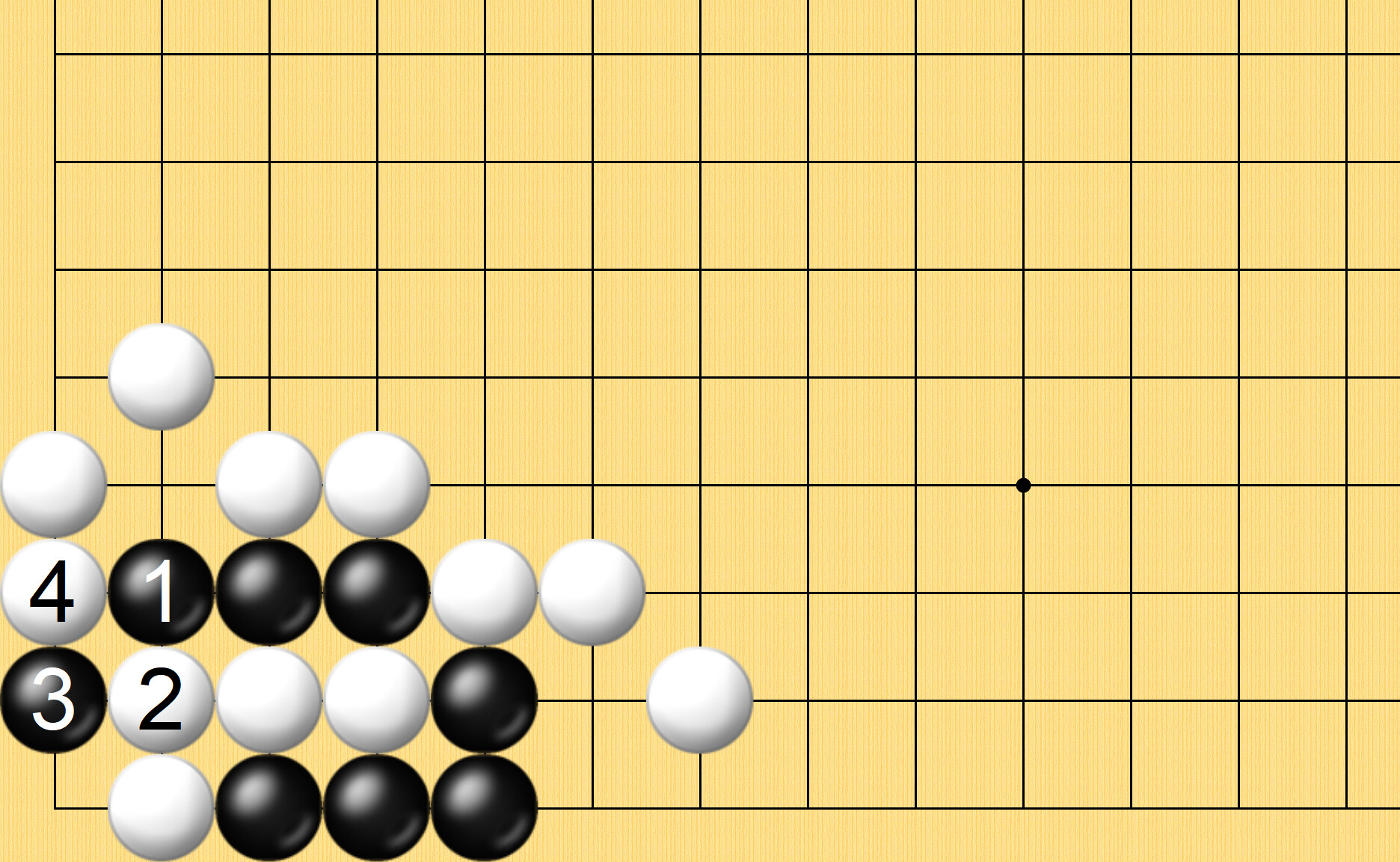 해설) 흑1 나가고 백2 밀고들어가고 흑3 막고 백4 이으며 단수치고 (계속)